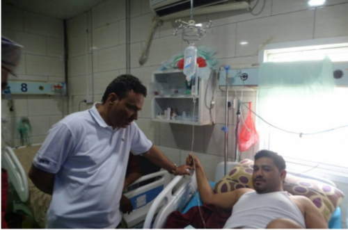 قام المقدم عبدالقوي باعش مدير عام الإدارة العامة للتوجيه المعنوي والعلاقات العامة بوزارة الداخلية، صباح اليوم الثلاثاء، بزيارة تفقدية لقائد كتائب سلمان الحزم العقيد قاسم الجوهري بمستشفى النقيب بالعاصمة المؤقتة عدن, وذلك للإطمئنان على حالته الصحية جرّاء تعرض سيارته التي كان يستقلها لوابل من الرصاص وهو في طريقه إلى مقر معسكر الدفاع الساحلي بمدينة التواهي بالعاصمة المؤقتة عدن سقط فيها شقيقه صبري الجوهري شهيداً، وأصيب هو بإصابات في ساقه وبطنه نقل على إثرها إلى المستشفى لتلقي العلاج.