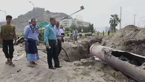 من جانبه أوضح المهندس علوي المحضار مدير عام مؤسسة المياه و الصرف الصحي ان العمل جار لتركيب أنبوب قطر ٢٤ بوصة و لمسافة ١٥٠ متر و أوضح ان هذا الانفجار ناتج عن تكون غازات في الخط الذي تم تركيبه ٢٠٠٢م وان إعادة تأهيل الخط بشكل كامل سيحتاج الى مبالغ كبيرة كون المسافة تزيد عن (١٩) كيلو متر وتمتد من التواهي مرورا بمديرية المعلا و حتى محطة الضخ بخور مكسر و منها الى منطقة العريش .