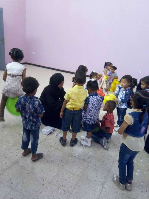 ثم قامت الاستاذة خالدة القديري بتوزيع الهدايا و الألعاب لأطفال الروضة و المقدمة من اللجنة الوطنية للمرأة.