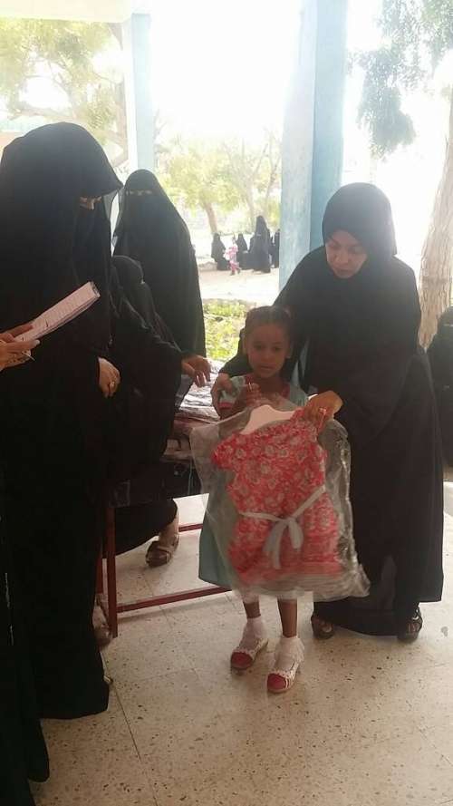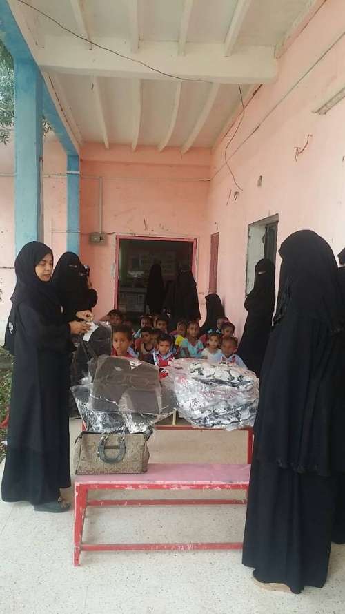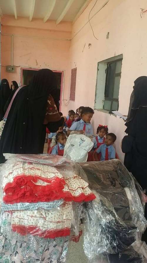 قامت الاستاذة خلود القديري مدير عام اللجنة الوطنية للمرأة بأبين بتوزيع ملابس للأطفال في روضة الكود .