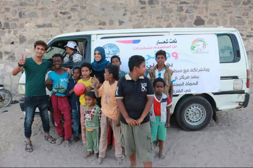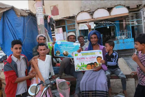 فيما قام شباب المركز وبمشاركة من شباب مدينة جعار قبل المباراة بتوزيع الملصت التوعوية في شوارع المدينة .