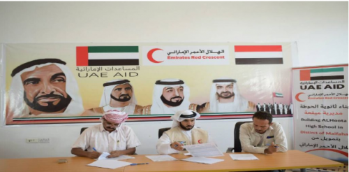 وقعت هيئة الهلال الأحمر الإماراتي إتفاقية لبناء وتشييد مبنى ثانوية مدينة الحوطة وضواحيها بمديرية ميفعة محافظة شبوة اليمنية استمرارا للدعم الذي تقدمه لقطاع التعليم في المحافظة.