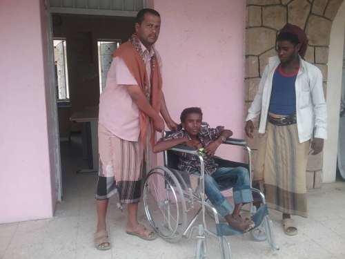 فقد تم بعون الله وتوفيقه تسليم كرسي متحرك للطفل المعاق خلدون النازح من منطقةالبرح محافظة تعز في مخيم النازحين بمديرية طورالباحة.