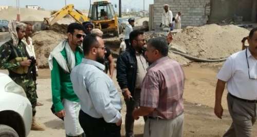 تفقد مدير عام مديرية البريقة بمحافظة عدن هاني محمد اليزيدي ، سير العمل في تقوية شبكة المياه لمنطقة الحرم الجامعي بمدينة الشعب.