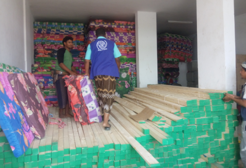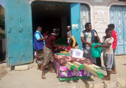 اليوم نقوم بتوزيع مواد إيوائية للنازحين من محافظات الحديدة وتعز حيث تم استهداف 220 أسرة نازحة منها 120 أسرة نازحة في الأماكن المفتوحة والعيش و 100 أسرة التي في المنازل .