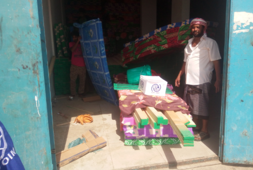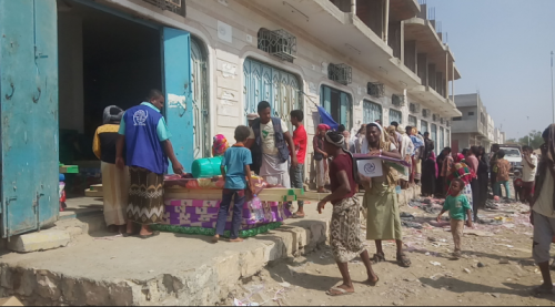 قامت منظمة الهجرة الدولية " OIM" يوم أمس السبت بتوزيع مواد إيوائية للنازحين من محافظتي تعز والحديدة في محافظة أبين .