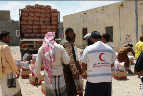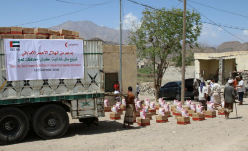 وزع الهلال الأحمر الإماراتي صباح اليوم مساعدات إنسانية لسكان منطقة كرش محافظة لحج.