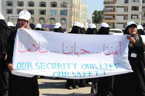 خرجت نساء عدن صباح اليوم في مسيرة سلمية تنادي بشعار " نريد السلام.. نريد السلام ..نريد السلام " نضمتها مجموعة " جنوبيات من أجل السلام " في ساحة العروض بخور مكسر بالعاصمة المؤقتة عدن .