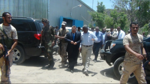 وكان في استقباله لدى وصوله ،القائم بأعمال محافظ عدن أحمد سالمين ووكيل المحافظة رشاد شائع ومدير عام المياه والصرف الصحي علوي المحضار.