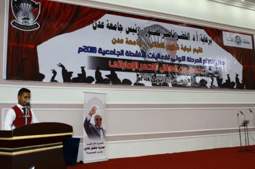 شهدت قاعة ابن خلدون بجامعة عدن صباح يومنا هذا الخميس، حفل اختتام المرحلة الأولى لفعاليات الأنشطة الجامعية للعام 2018 م بدعم سخي من الهلال الأحمر الإماراتي.