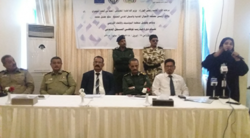 بدعم وتمويل من منظمة اليونسيف والاتحاد الاوروبي افتتح صباح اليوم وكيل وزارة الداخلية لقطاع الخدمات المدنية اللواء محمد مساعد الأمير ومعه عبدالحكيم الشعبي مستشار محافظ عدن لشؤن المديريات الدورة التدريبية لموظفي السجل المدني بالعاصمة عدن والتي تستمر لمدة 5 أيام بمشاركة (٣٥) متدربا من محافظات عدن ،لحج ،أبين ،الضالع ،شبوة ،حضرموت،المهرة وسقطرى .
