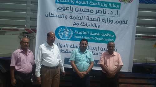 من جانبه اوضح الدكتور عمر زين السقاف القائم باعمال مدير مكتب الصحة العالمية بعدن ان مكتب المنطمة قام بالتعاون مع الوزارة في الاعداد لارسال الشحنة من الادوية والمستلزمات الطبية من العاصمة عدن الى مطار سيؤن ومن ثم نقلها جوا الى جزيرة سقطرة كما عبر عن شكره للخطوط الجوية الذي خصص طائرة لنقل شحنة الادوية الى جزيرة سقطرة.