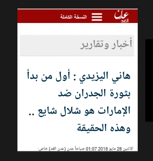 السؤال الذي يطرح نفسه لماذا سكت هاني اليزيدي بعد ان عرف هذه المعلومة حد قوله انها من مصدر مقرب من الإمارات؟ ولماذا انتظر هاني اليزيدي وعدن الغد كل هذا الوقت عن نشرها؟ .