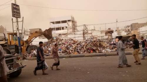أما في مديرية صيرة والتي شهدت وصول الآلاف أيضاً من القادمين للتبضع في أسواقها فقد شاركت في عملية التنظيف جرافة كبيرة بمعية أربعة شاحنات من الحجم الكبير.