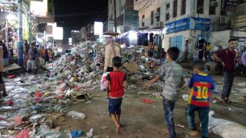 ففي خِضَم انشغال الناس بالتسوُّق بعد مغرب أول من أمس التاسع والعشرين من شهر رمضان الماضي كان عمال النظافة يتنافسون على إنجاز مهامهم بوتيرة عالية لانتشال القمامات من حاوياتها المنتشرة في أماكنها المخصصة بالمناطق التابعة للأقسام العشرة في مديريات العاصمة عدن.