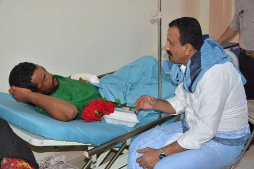 وتفقد وكيل المحافظة الجرحى في مستشفيات البريهي، وصابر، والصليب الأحمر .. مطلعاً على احوالهم ومطمأنا على صحتهم..ناقلاً لهم تحيات فخامة رئيس الجمهورية المشير عبدربه منصور هادي، ومتمنيا لهم الشفاء العاجل.
