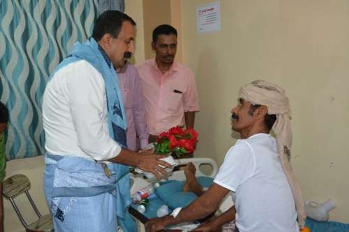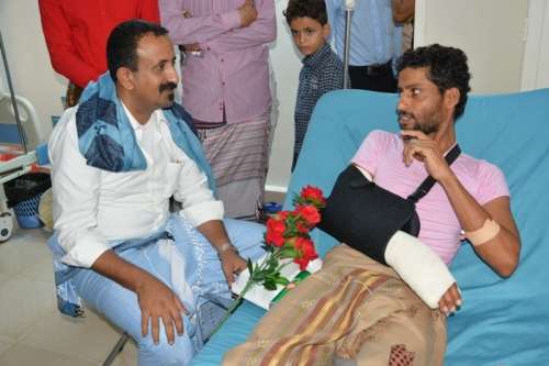وفي زيارته للجرحى الابطال القادمون من خطوط التماس الاولي من ابطال الجيش الوطني والمقاومة الشعبية الذين يخوضون فيها ملاحم النصر والبطولة لتحرير محافظة الحديدة من ميليشيات الحوثي الايرانية.