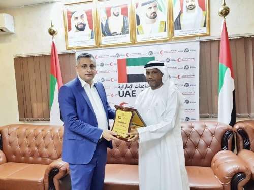 وكرّم مدير الهلال الأحمر الإماراتي وزير الثقافة بدرع الأخوّة والوفاء وشكره على الزيارة.