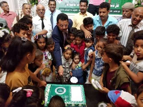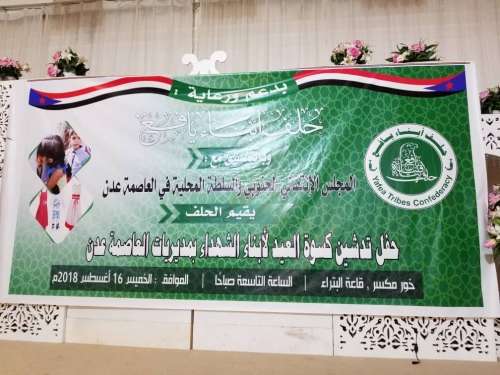 كما أنه يسرنا في حلف قبائل يافع أن ندشن اليوم عملية توزيع كسوة العيد لهذا العام لأبناء وبنات الشهداء لكل مديريات عدن 4000 كسوة بمبلغ يقدر بحوالي60 مليون ريال يمني،