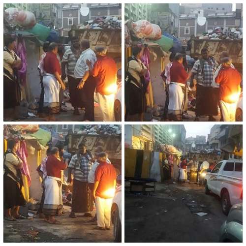 وكذلك في مديرية صيرة التي زارها المهندس قائد راشد مشاهداً ورشة عمل كبرى لعمال صندوق النظافة في الشوارع التي امتلأت بأكوام القمامة ومخلفاتها.