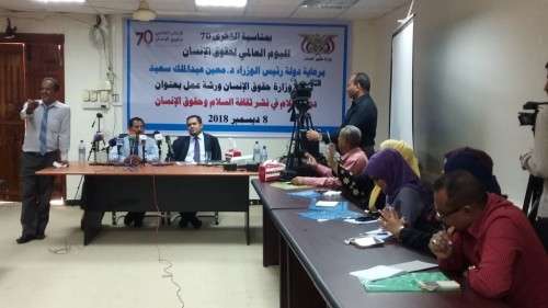 جاء ذلك في كلمته التي ألقاها خلال افتتاح أعمال ورشة العمل التي نظمتها وزارة حقوق الإنسان تحت شعار " دور الإعلام في نشر ثقافة السلام وحقوق الإنسان " بالتزامن مع الذكر ال70 لليوم العالمي لحقوق الإنسان ، وبمشاركة 40 مشارك ومشاركة من ناشطين وحقوقيون وممثلين لوسائل إعلام مختلف بالعاصمة المؤقتة عدن .
