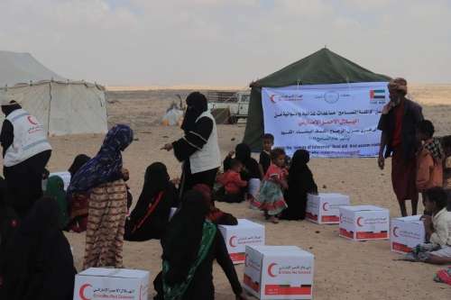 ويحرص الهلال الأحمر الإماراتي منذ 2015 على تقديم المساعدات الإنسانية وتحسين الخدمات الإيوائية لسكان هذه المناطق النائية والتجمعات السكانية المتنقلة ودعم عملية استقرارهم .