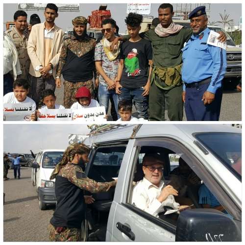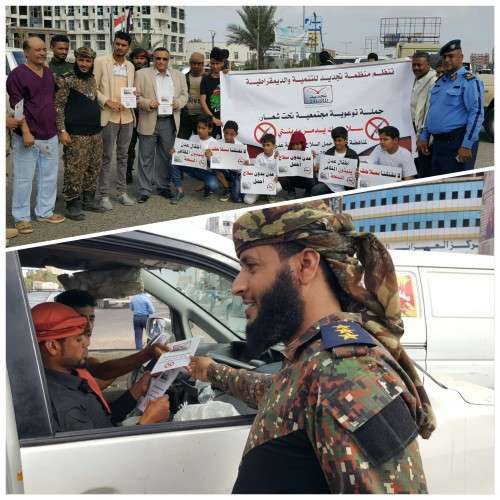 ونجحت يوم أمس فعالية الحملة التوعوية المجتمعية لمنع مظاهر حمل السلاح في مدينة عدن التي تم تدشينها في مديرية المنصورة بمحيط دوَّار كالتكس بحضور الأستاذ محمد محمد عمر البري مدير عام مديرية المنصورة وأخيه القائد كمال مطلق الحالمي قائد كتيبة الاحتياط قائد قطاع المنصورة والعقيد حسين صالح مسهر مدير قسم شرطة المنصورة، وعدد من أعضاء منظمة تجديد للتنمية والديمقراطية التي يرأسها القاضي فهيم عبدالله محسن عضو مجلس القضاء الأعلى رئيس محكمة استئناف العاصمة عدن، يتقدمهما الشابان نادر نوشان خان رئيس حملة مناهضة ظاهرة حمل السلاح في مدينة عدن ومحمد شهاب نائب رئيس الحملة وشخصيات شبابية وإعلامية ومواطنون، وذلك بفضل الله تعالى ثم بفضل القوات الأمنية ورجال المرور في مديرية المنصورة الذين حضروا مع قياداتهم لتأمين الموقع وتسهيل الحركة منذ الصباح الباكر.