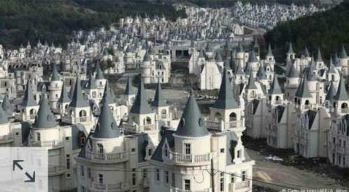 في عمق إحدى المحافظات بشمال غرب تركيا ما يشبه السراب، مئات من المنازل الفخمة المتراصة في صفوف تعلوها قبب تُذكر بالقصور الفرنسية أو قصور حدائق ديزني، ولكنها خالية من الساكنين. وتلك القصور التي بنيت لجذب الشارين الأجانب لا تزال فارغة.