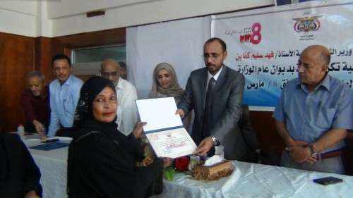 وخلال الحفل أكد وزير الثروة السمكية الاستاذ/ فهد سليم كفاين أن هذا التكريم يأتي تقديرا لجهود المرأة ونضالها وكفاحها مع شقيقها الرجل في مختلف جوانب الحياة فهي تعتبر الأساس في عملية النمو الاقتصادي والثقافي للمجتمع لأنها الركن الأساسي فهي الأم والأخت والبنت والزوجة وهي نصف المجتمع الذي أنجبت النصف الاخر فالمرأة العاملة تستحق الاحترام والتقدير كونها تعمل ليلا ونهارا سواء في بيتها أو خارجه فهي قوية قادرة على خدمة مجتمعها ، وترفض أن تكون عالة على المجتمع..
