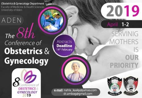 يستعد قسم النساء والولادة بكلية الطب والعلوم الصحية بجامعة عدن تنظيم مؤتمر""الجايني"" الثامن في في 1، 2 من شهر أبريل 2019 بالعاصمة عدن .