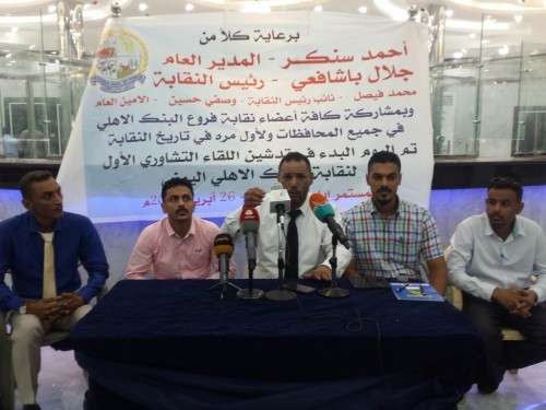 وفي اللقاء ، القى رئيس نقابة البنك الاهلي اليمني، جلال باشافعي، كلمة ترحيبية للمشاركين باللقاء، مشيرا الى ان انعقاد اللقاء الاول لنقابة البنك الاهلي اليمني وجميع فروعه الذي يستمر ثلاثة ايام، يأتي لمناقشة المواضيع الذي تهتم بسير نشاط البنك، ودور النقابة و المهامه المناطه بها في المحافظة على حقوق الموظفين، مستعرضا الانجازات المحققة خلال العام الماضي والتي تعكس مستوى النشاط الملحوظ للبنك والجهود الذي بذلتها النقابة في تجهيز وتأهيل البنك وعدد من فروعه .
