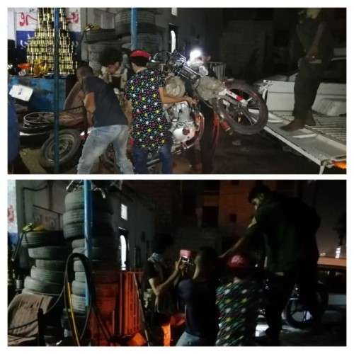 وأضاف المصدر أن الملازم عبدالصمد العمري قائد سرية الطوارئ في الكتيبة والقطاع تلقى بلاغاً يفيد بأن مواطناً يستنجد بأسود الكتيبة لمساعدته في الورطة التي حلَّـت به دون سابق إنذار، مستطرداً ذات المصدر أنه وبناء على توجيهات القائد كمال مطلق الحالمي قائد كتيبة الاحتياط الثانية وقطاع المنصورة تحركت عدد من الأطقم لتقييم الضرر، ومعرفة مدى نوعية المساعدة التي يحتاجها الشاب صالح زين صالح من أجل نجدته، وهناك قام الأسود بنقل دراجته على متن أحد الأطقم للبحث عن محل لإصلاح الدراجات النارية، لا سيما أنه من الصعوبة بمكان إيجاد (ورشة) متخصصة في تصليح الدراجات النارية إلا بعد بحث طويل.