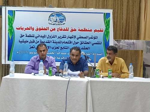 اقامت منظمة حق ل الدفاع عن الحقوق والحريات صباح اليوم مؤتمر صحافي لاشهار تقرير النزول الميداني ل منظمة حق ل تقصي الحقائق حول اقتحام المدينة القديمة بمحافظة تعز من قبل ميليشات الحشد الشعبي التابع ل حزب الاصلاح فرع الاخوان المسلمين في اليمن.