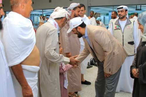وكان في توديع الحجاج بصالة مطار عدن وفد من الهلال الأحمر الإماراتي ونائب رئيس المجلس الانتقالي الجنوبي الشيخ هاني بن بريك.