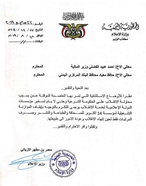 وقال مصدر في حكومة الشرعية ان تلك الاموال سيتم تحويلها إلى الحوثيين لتذهب إلى المجهود الحربي لقتال قوات التحالف والقوات الجنوبية المتحالفة معه والتابعة للمجلس الانتقالي .