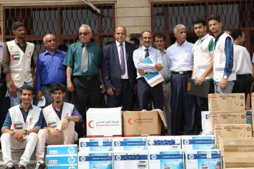 دشن الهلال الأحمر الإماراتي صباح اليوم الاثنين حملة دعم كليات جامعة عدن بأجهزة الكمبيوتر والأدوات الإلكترونية الحديثة.