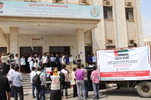 يذكر ان الهلال الأحمر الإماراتي أطلق حملة لدعم كليات جامعة عدن بأجهزة الكمبيوتر والأدوات الإلكترونية الحديثة والدعم كالتالي: