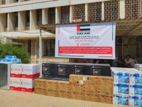 يذكر أن الهلال الأحمر الإماراتي يواصل حملة دعم كليات جامعة عدن بالأجهزة الإلكترونية المتمثلة بالكمبيوتر والطابعات وأدوات ربط الشبكة.