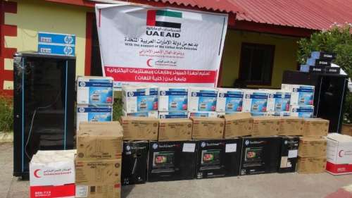 تسلمت كلية اللغات بجامعة عدن اليوم الثلاثاء حصتها من المساعدات المقدمة من دولة الإمارات العربية بإشراف الهلال الأحمر الإماراتي.