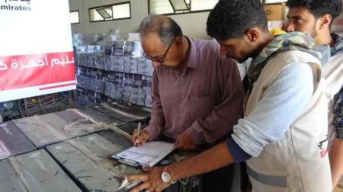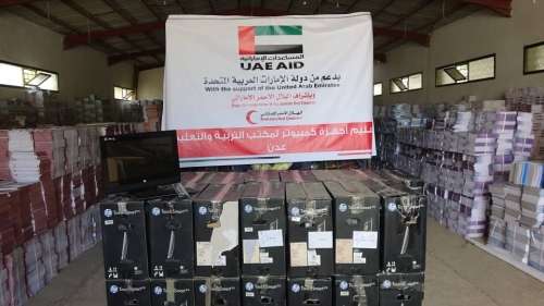 تسلم مكتب التربية والتعليم بالعاصمة عدن عدداً من الأجهزة الإلكترونية (أجهزة الكمبيوتر والطابعات والمستلزمات وأدوات ربط الشبكة) المقدمة من دولة الإمارات العربية المتحدة بإشراف من الهلال الأحمر الإماراتي ..