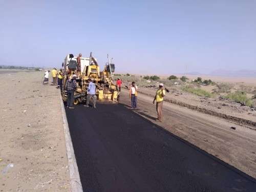 حيث تم اليوم فرش طبقة الإسفلت للمساحة الجاهزة من طبقة أساس الطريق والمرشوشة بمادة الأم سي كما في المواصفات المعهودة للمشروع وتقدر المساحة المنجزة بحوالي 3050متر مربع أي ما يعادل 150طن.