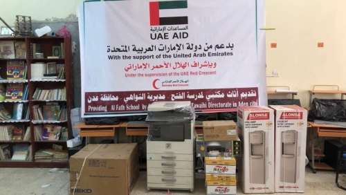 ساهمت دولة الامارات العربية المتحدة عبر ذراعها للأعمال الانسانية الهلال الاحمر الاماراتي في انجاح استئناف العملية التعليمية في المحافظات المحررة عامة وفي العاصمة عدن خاصة وذلك جاء عقب التحرير مباشرة حيث بادرت الإمارات بتبني عملية التأهيل والترميم وصيانة المدارس واعلنت عن بدء المرحلة الأولى خلال مؤتمر صحفي في سبتمبر 2015 تضمن تأهيل وصيانة54 مدرسة إضافة إلى تنفيذ مرحلة ثانية لتشمل 149 مبنى تعليمي في عدن وجاء ذلك تأييدا واستجابة لاعلان وزارة التربية والتعليم في الحكومة الشرعية استئناف الدراسة وتحديدا في اكتوبر 2015 .