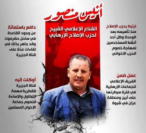 ضمن دور قناة الجزيرة التخريبي في اليمن، استعانت بعدد من الإعلاميين التابعين لتنظيم القاعدة وداعش كضيوف دائمين للتحريض على الأجهزة الأمنية التي حققت نجاحات كبيرة في محاربة الإرهاب .