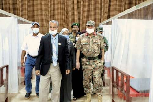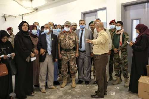وقدم الدكتور القعيطي، للواء بن بريك، نبذه مختصرة وسريعة عن التجهيزات في المركز وعن عدد إجمالي الطاقم الطبي والتمريضي العاملين فيه والذي وصل عددهم إلى (78)، منهم (22) طبيبا و(42) ممرضاً، وباقي الطاقم نظافة موزعين على قسم الفرز في مبنى الكوميتي هول والعزل في مستشفى الأمل بشكل نوبات، مشيراً إلى أن مركز العزل مجهز لاستقبال الحالات الصعبة بعد أن يتم معاينتها وفرزها في مبنى فرز المرضى.