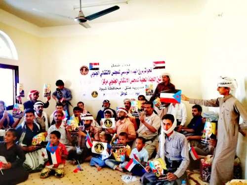 وخلال التدشين تم توزيع أعلام دولة الجنوب و شعارات المجلس الإنتقالي الجنوبي وصور الرئيس القائد عيدروس بن قاسم الزُبيدي.