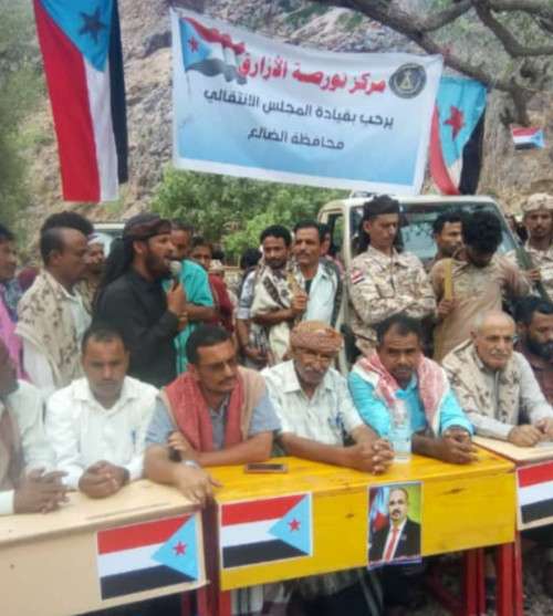 شهدت مديرية الأزارق بمحافظة الضالع امس السبت فعالية جماهيرية للمجلس الانتقالي في مركز تورصة بحضور رئيس القيادة المحلية للمجلس الانتقالي الجنوبي العميد عبدالله مهدي ورئيس انتقالي مديرية الأزارق العقيد عبدالله حسين أحمد إلى جانب حضور وكيل المحافظة نبيل العفيف وعضو الهيئة الإدارية للمجلس المحلي بالمحافظة العميد علي محمد العود ومدير عام الأزارق علي هادي الحسني ونائب الانتقالي بالمديرية ومدير الصحة والسكان بالمديرية ومشائخ بلاد الاحمدي وعدد من الشخصيات على مستوى المحافظة والمديرية.
