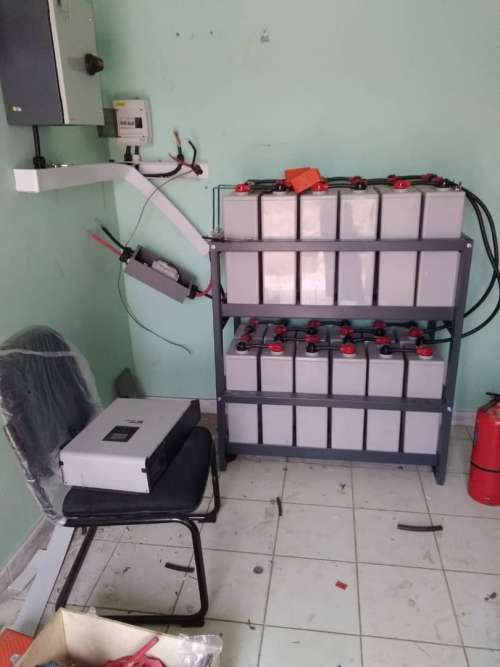 وتكونت المنظومة من عدد من الألواح الشمسيه تقدر بحوالي 12 لوح حوالي، و 24 بطارية بقوة1500، وقد تم تجهيز الالواح الشمسية فوق سطح المركز وتركيب البطاريات.