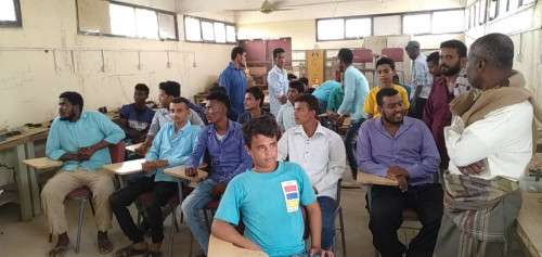 وخلال الزيارة طاف الطلاب برفقه الاستاذ عدني باهادي والوكيل التربوي والمدربين بين الأقسام الفنية بالمعهد واستمع الطلاب على شرح المدربين لهم في تخصصات تمديدات الكهرباء والألمنيوم ومكيانيك السيارات.
