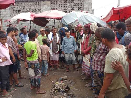 واطّلع الحوتري خلال الزيارة التفقدية على أوضاع السوق وما يعانيه من إهمال وتكدس لمخلفات الأسماك والخضار وطفح مياه الصرف الصحي.