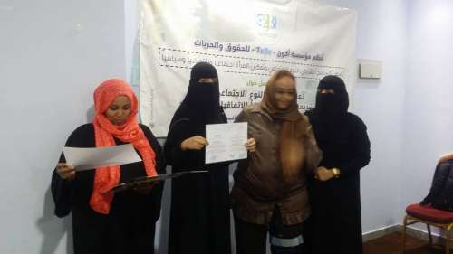 اختتمت مؤسسة أكون " TOBE" للحريات والحقوق في قاعة المعلا بلازا محافظة عدن " ورشة عمل حول تعزيز مفهوم النوع الاجتماعي في التشريعات الوطنية وفقا للاتفاقات الدولية " والتي استمرت خلال الفترة (22-26) أغسطس 2020م بمشاركة (30) امرأة ، محاميات ،ناشطات مجتمع المدني وطالبات جامعات وإعلاميات .